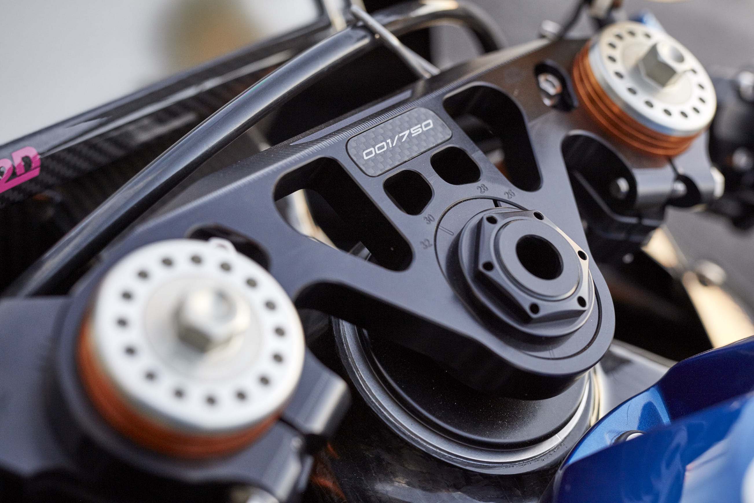 - Milled fork bridge with carbon badge (numbered 001/750 to 750/750)