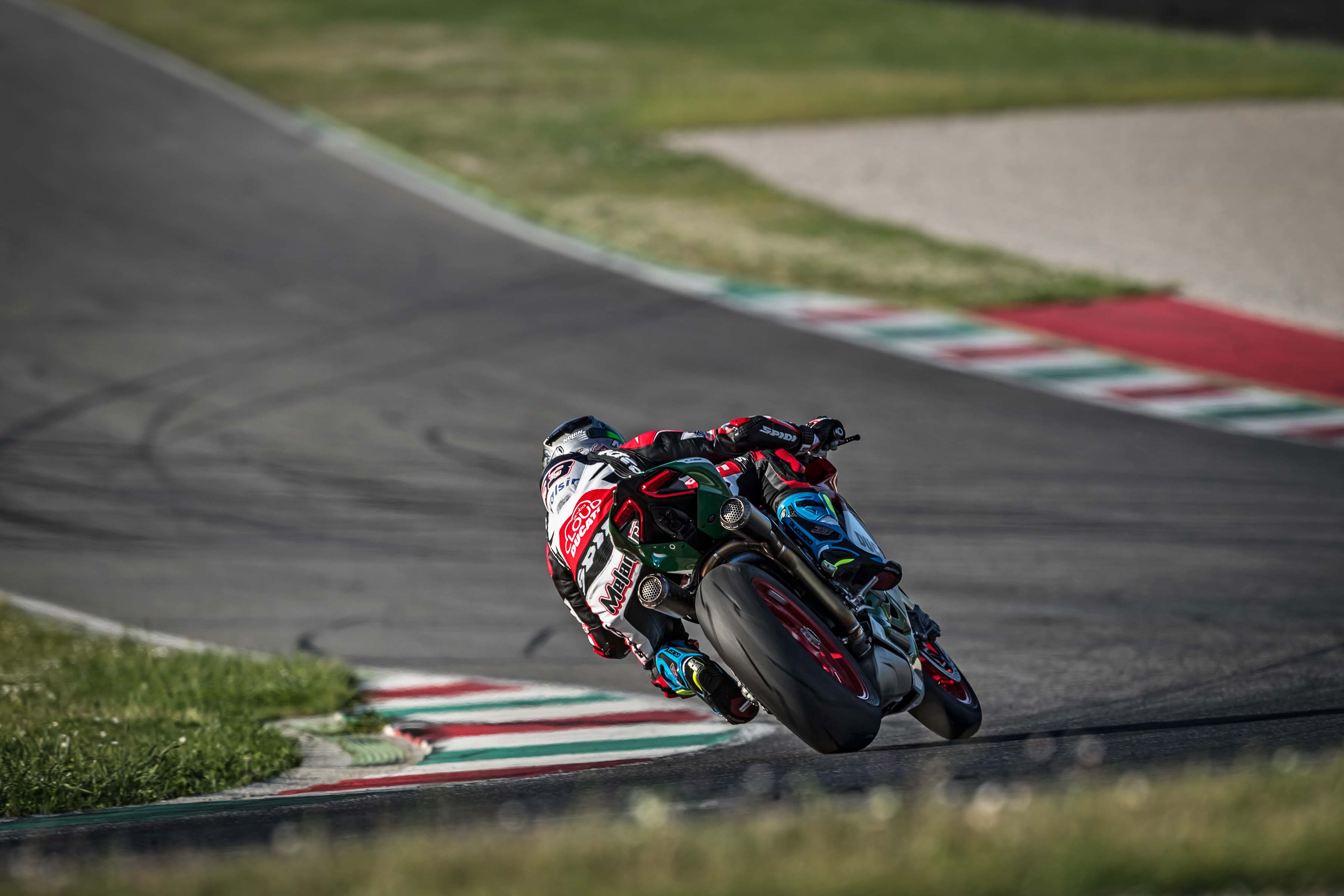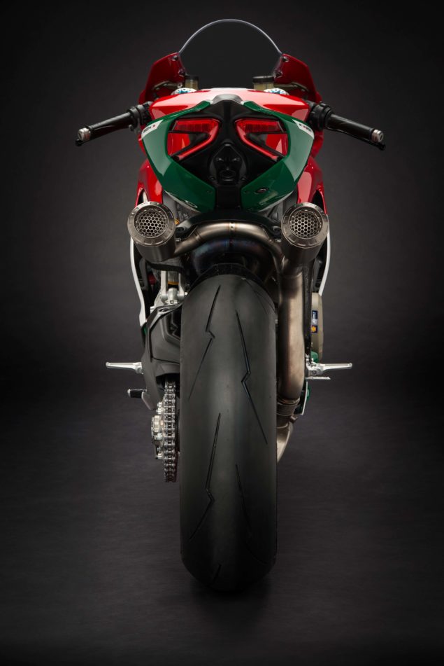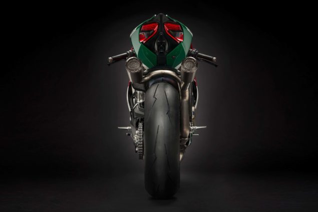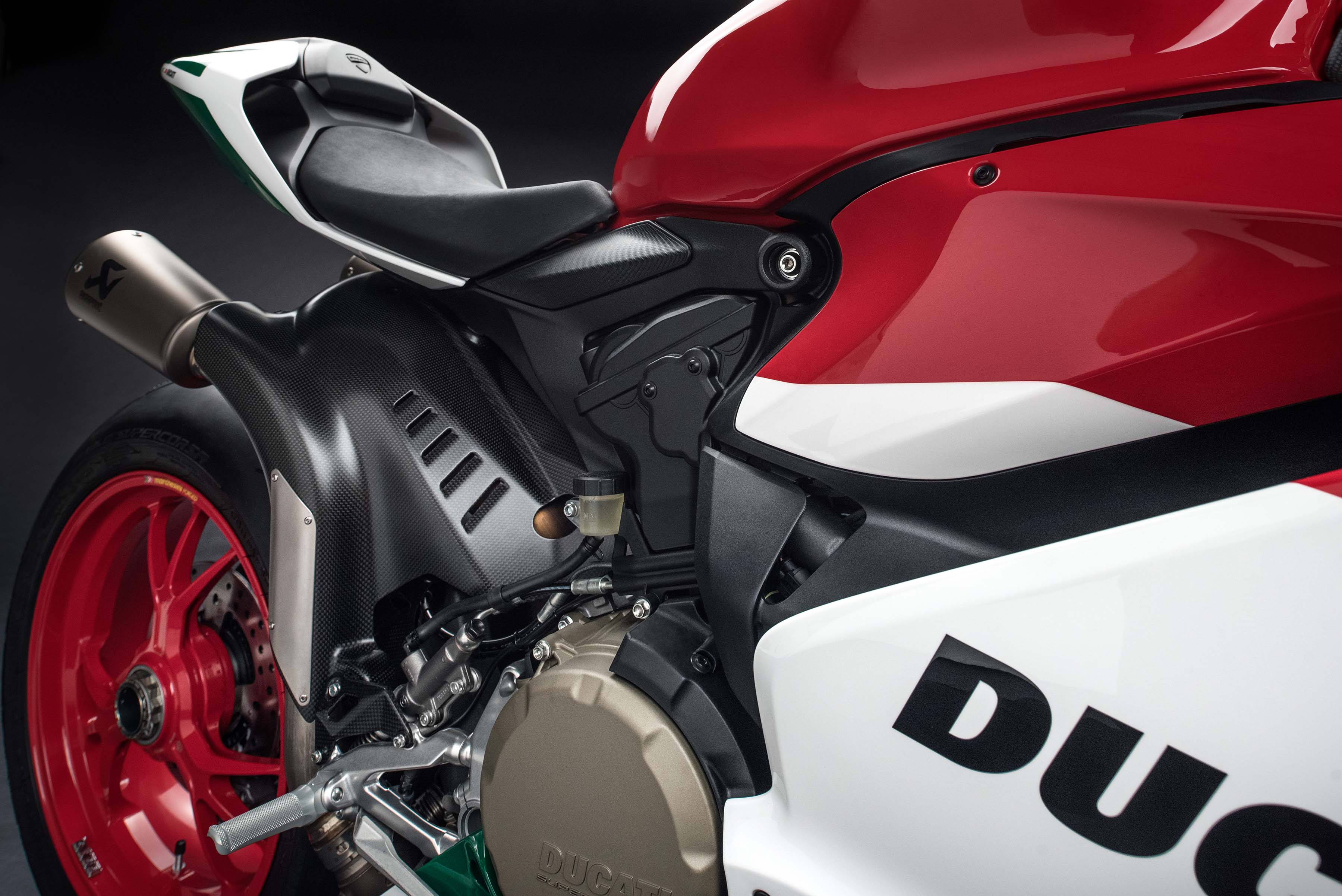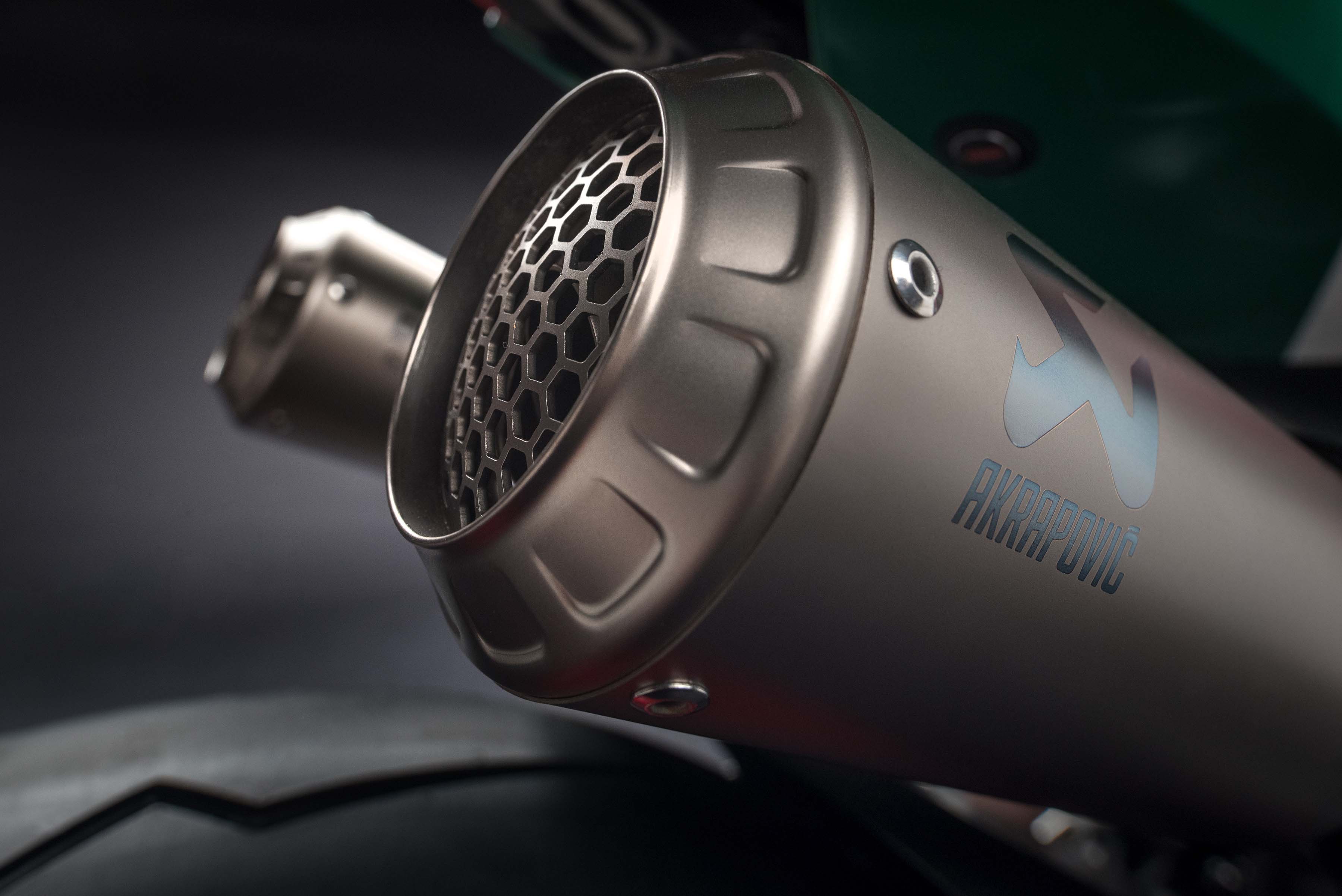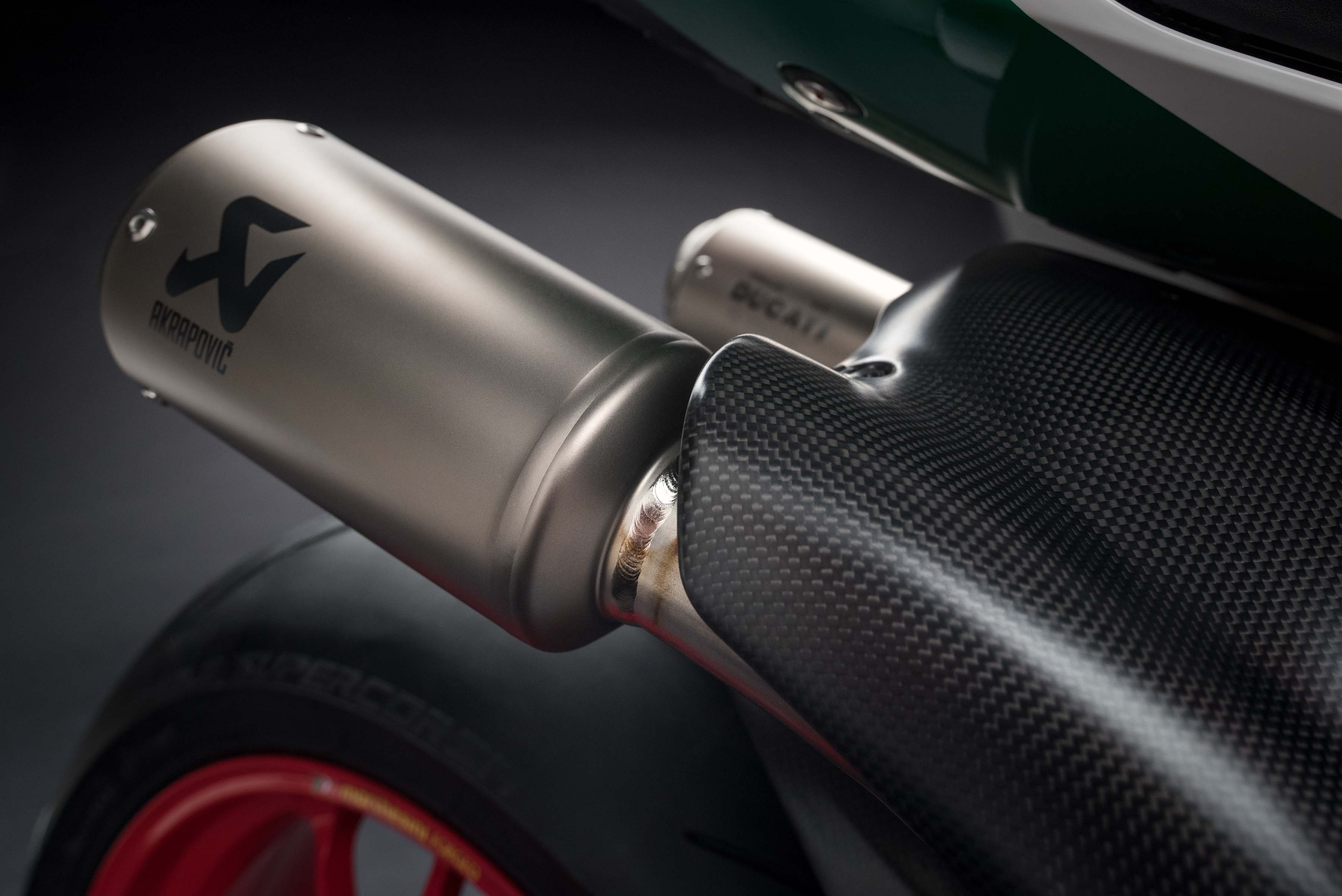 Of course, there is the superlight titanium exhaust from Akrapovic, which takes its style from the WorldSBK-exhaust that Ducati Corse uses on the Panigale R.