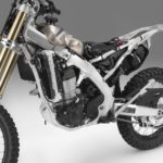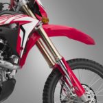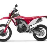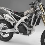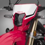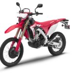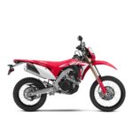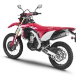 The Honda CRF450L was developed in tandem with the new Honda CRF450X enduro, and released in conjunction with a revised Honda CRF450R and the up-spec “Works Edition” Honda CRF450RWE motocross machines.
