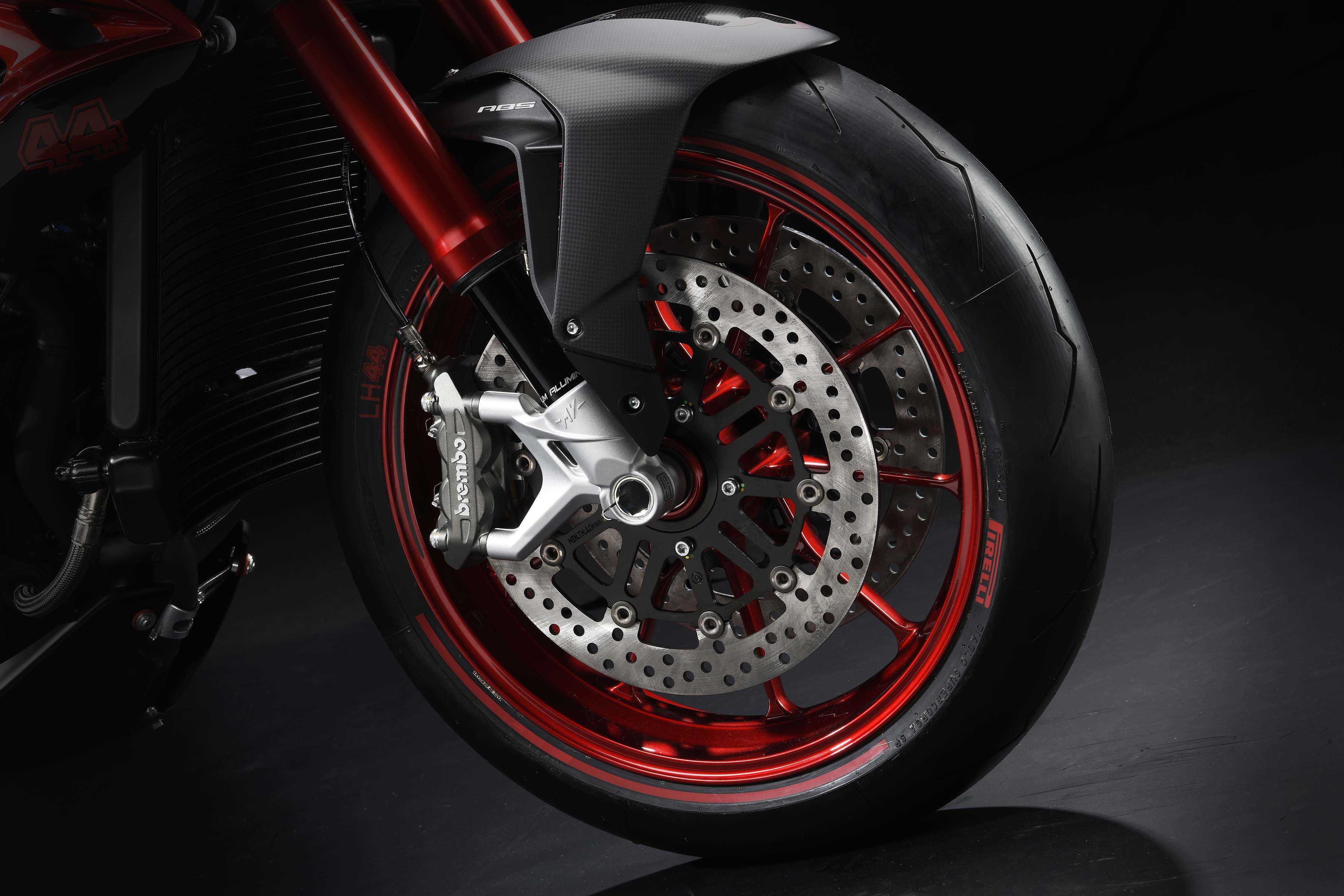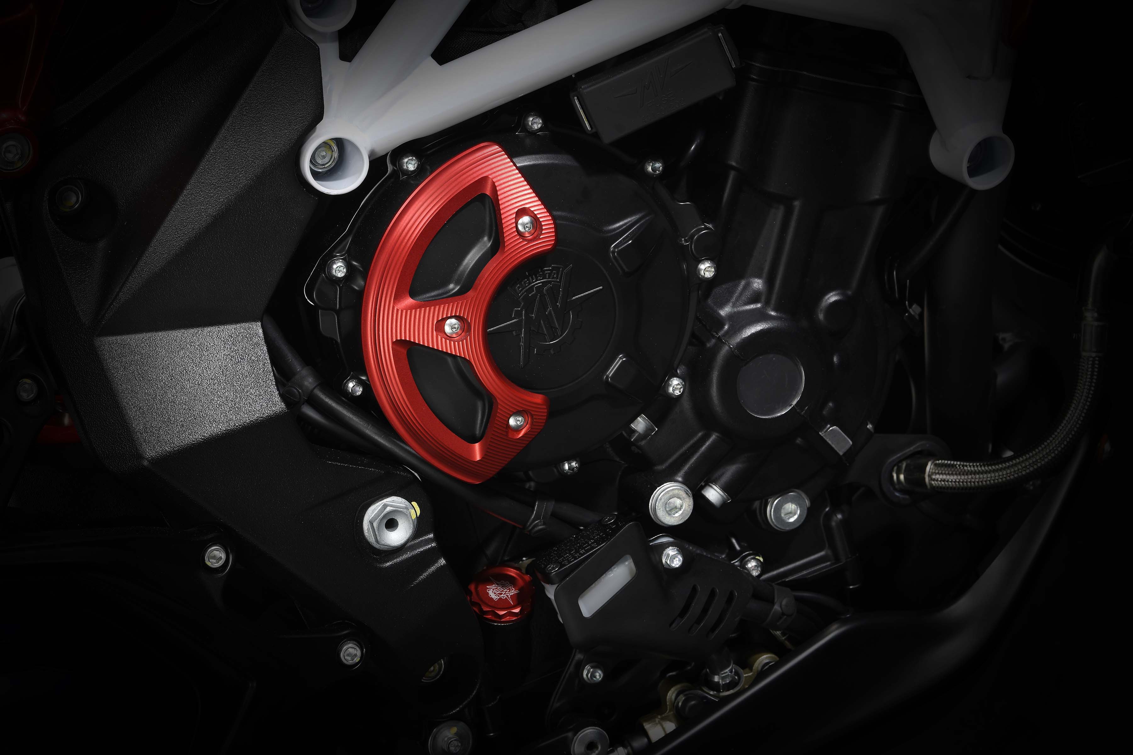 MV Agusta does say that the exhaust system has been given a ceramic coating, and that there are a number of billet aluminum pieces and accents on the bike, like the brake and clutch levers, clutch cover guard, and fluid reservoir caps.