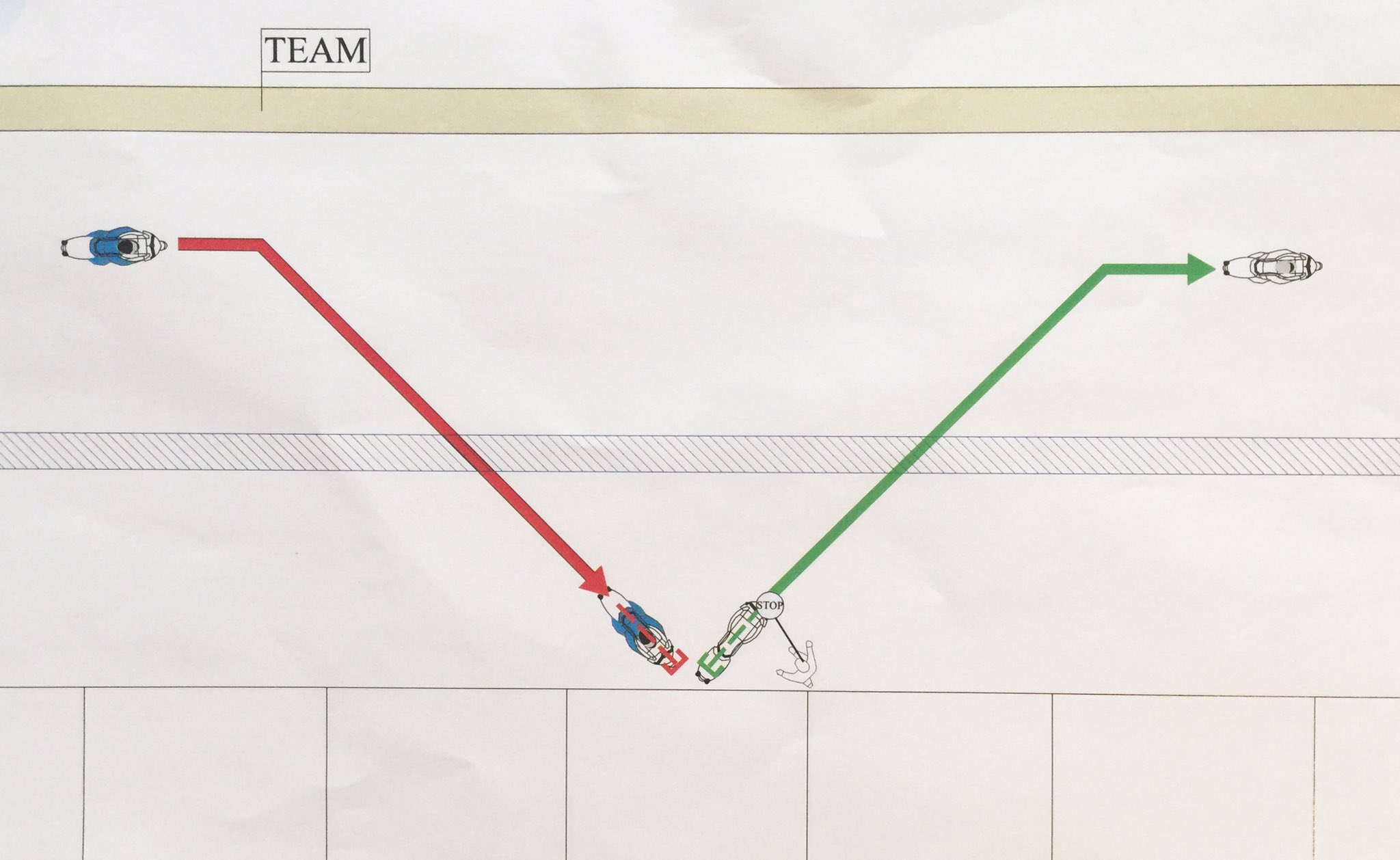 Bikes will have to come in at a 45° angle, while the second bike will also be parked at a 45° angle. After the rider has swapped from one bike to the next, they will have to wait to be released by a mechanic holding an F1-style lollipop, who will scan behind and ensure it is safe for the riders to leave pit lane.