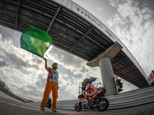 Moto2 pits Franco Morbidelli against a resurgent Mattia Pasini, the Italian veteran making it four pole positions in a row. Tom Luthi may be on the third row, but his qualifying position belies his pace. Sadly, Alex Márquez will be absent, the Spaniard having banged up his hip badly enough that it’s trapped a nerve.