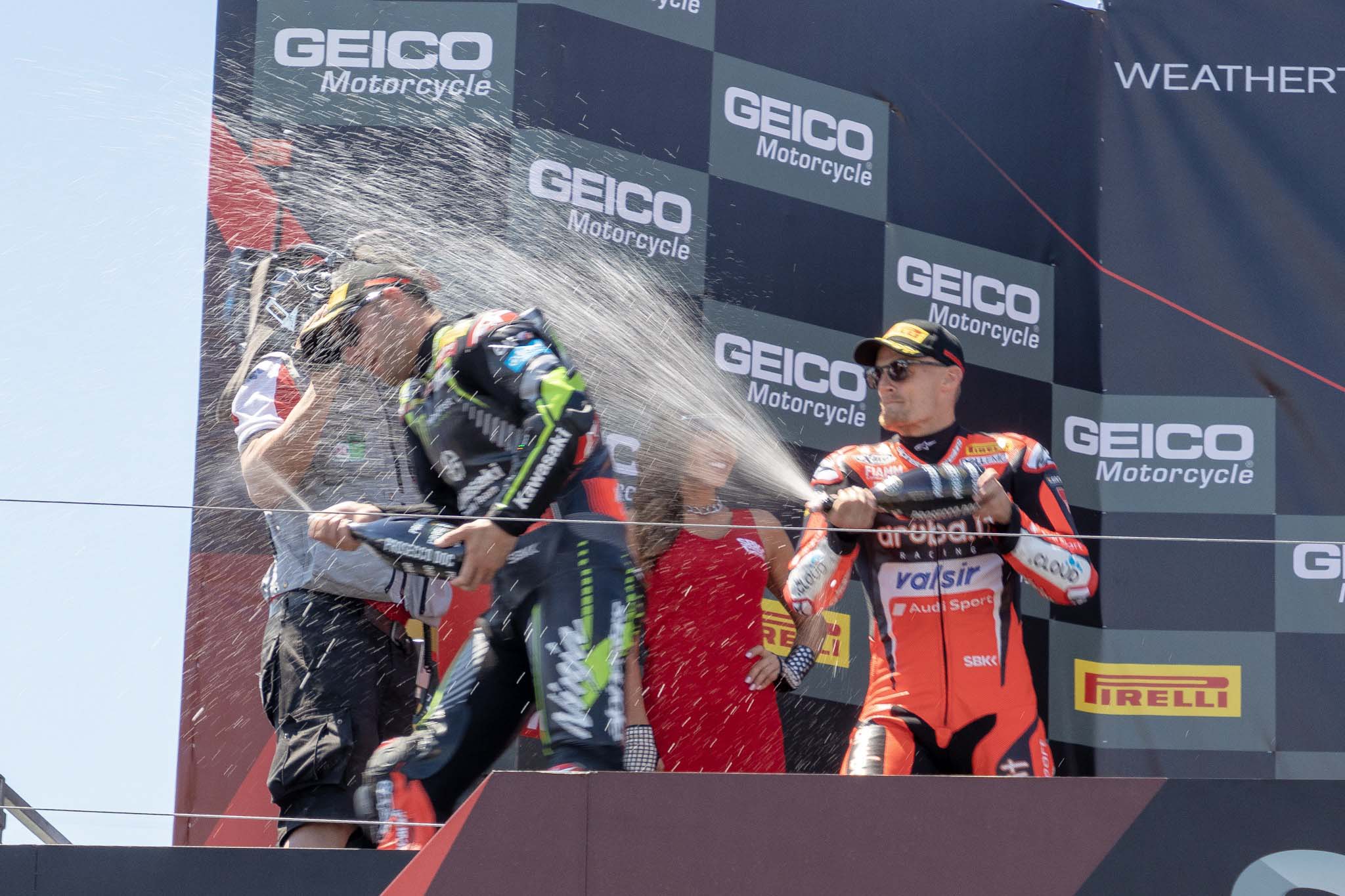 Besides great racing, there were also some changes of note at Laguna Seca. First, the podium was turned 180 degrees to face the fans in the paddock. This was a welcome change that brought the post-race celebrations much closer to the spectators.