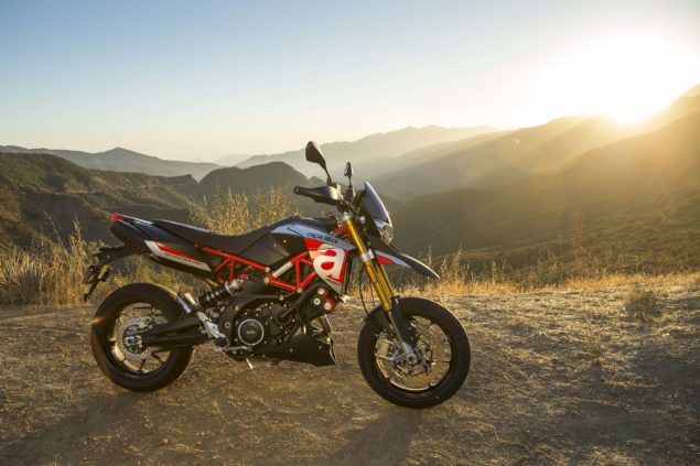The real strength with Aprilia’s 900cc platform though is the pricing, and at $10,999 the Aprilia Dorsoduro is the cheapest motorcycle in the large-displacement supermoto category – giving riders an excellent bang-for-the-buck offering, not to mention a fun motorcycle to ride.